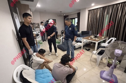 1月29日下午,警方取得法院搜查令后,联合当地警局及移民执法人员,对芭提雅一处公寓展开突击检查。在6楼房间内,警方发现两名中国籍男子,分别为刘某(39岁)及邵某(49岁)。现场查获26部手机、2台华为笔记本电脑、1台路由器、4本记录本及现金103,400泰铢。警方表示,房间内大量手机同时运行,Telegram应用频繁弹出中文信息,行为模式高度疑似诈骗作业现场。