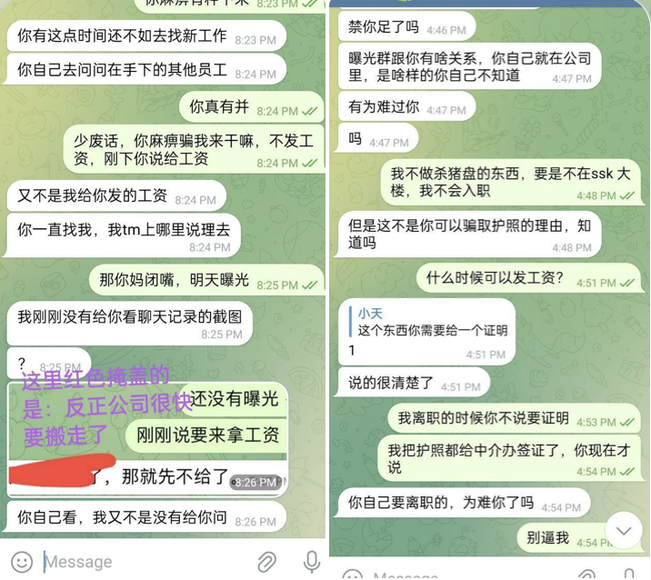 3.风云体育公司倒闭之后,以护照未在公司为由,不发离职员工工资。离职之前我将护照申请出来给我孩子办13A挂靠签证,知道是杀猪盘公司后,然后离职,当时也没说离职护照不在公司不发工资。我他妈护照是我的护照,我拿出来办事情,就他妈以这个借口不发工资?我又没偷没抢没损害公司。